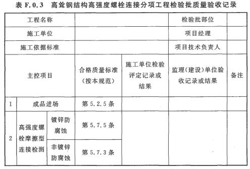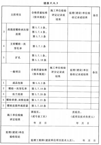 F.0.3 高聳鋼結(jié)構(gòu)高強度螺栓連接分項工程檢驗批質(zhì)量驗收應(yīng)按表F.0.3進行記錄。