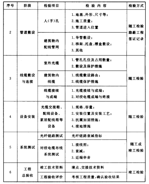 7.0.2 住宅區(qū)和住宅建筑內(nèi)光纖到戶通信設(shè)施工程宜按表7.0.2所列方式進(jìn)行檢驗(yàn),檢驗(yàn)結(jié)果應(yīng)作為工程竣工資料的組成部分。
