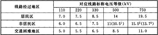 表A.0.1 導(dǎo)線對地面最小距離(m)