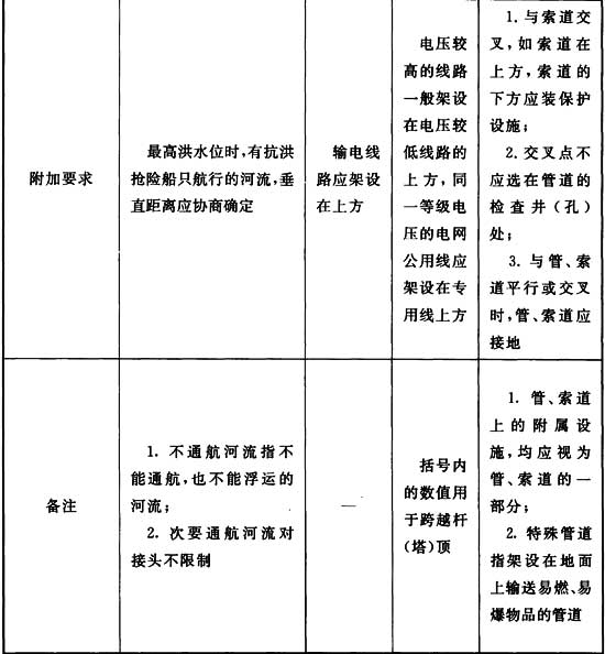 表A.0.6 輸電線路與鐵路、公路、河流、管道、索道及各種架空線路交叉或接近距離的基本要求
