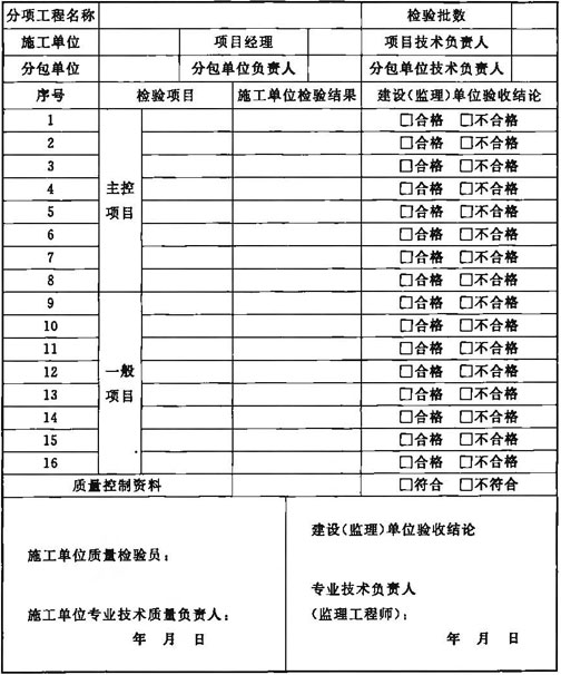 附錄A 自動化儀表分項工程質(zhì)量驗收記錄