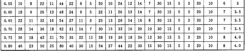 注:1 表中數(shù)值以管道內(nèi)徑D的倍數(shù)表示。