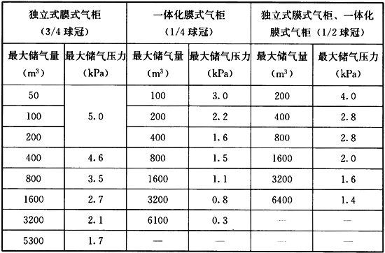 附錄B 膜式氣柜最大儲氣量與最大承壓的關(guān)系