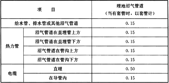 表C.0.2 埋地沼氣管道與建(構(gòu))筑物或相鄰管道之間垂直凈距(m)