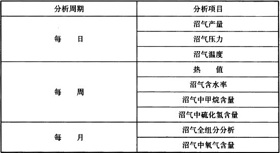 表E.0.3 沼氣分析化驗(yàn)項(xiàng)目及檢測周期