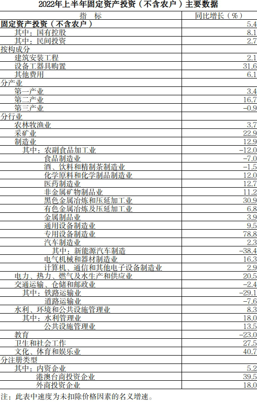 上半年,全省固定資產(chǎn)投資(不含農(nóng)戶)同比增長(zhǎng)5.4%。其中,民間固定資產(chǎn)投資增長(zhǎng)2.7%。(山西?。?022年上半年全省固定資產(chǎn)投資運(yùn)行情況