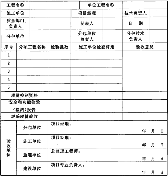 附錄F 單位工程質(zhì)量竣工驗(yàn)收記錄