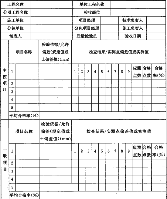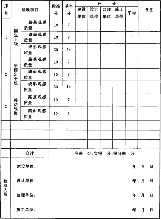 注:1 表中的“檢驗(yàn)項(xiàng)目”內(nèi)有缺項(xiàng)(工程無該項(xiàng))時,該項(xiàng)不檢驗(yàn)、不參加計(jì)分,可不填入表內(nèi);