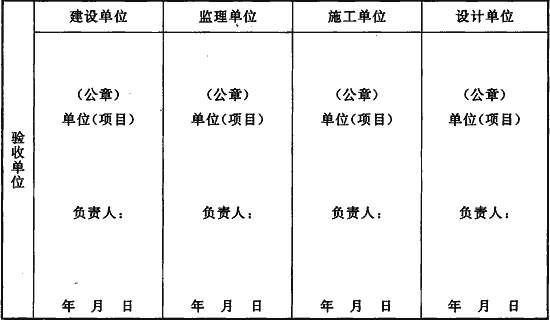 F.0.1 單位工程質(zhì)量竣工驗(yàn)收應(yīng)由施工單位填寫,驗(yàn)收結(jié)論應(yīng)由監(jiān)理(建設(shè))單位填寫,綜合驗(yàn)收結(jié)論應(yīng)由參加驗(yàn)收的各方共同商定,建設(shè)單位填寫,并應(yīng)對工程質(zhì)量是否符合設(shè)計(jì)和規(guī)范要求及總體質(zhì)量水平作出評價,參加驗(yàn)收各單位負(fù)責(zé)人簽字并蓋單位公章。