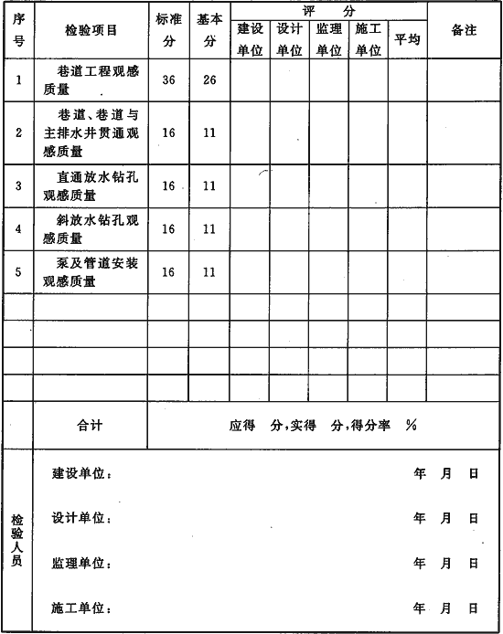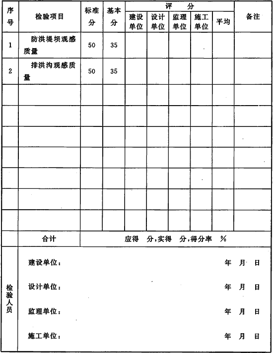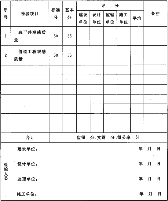 注:1 表中的“檢驗(yàn)項(xiàng)目”內(nèi)有缺項(xiàng)(工程無該項(xiàng))時,該項(xiàng)不檢驗(yàn)、不參加計(jì)分,可不填入內(nèi);