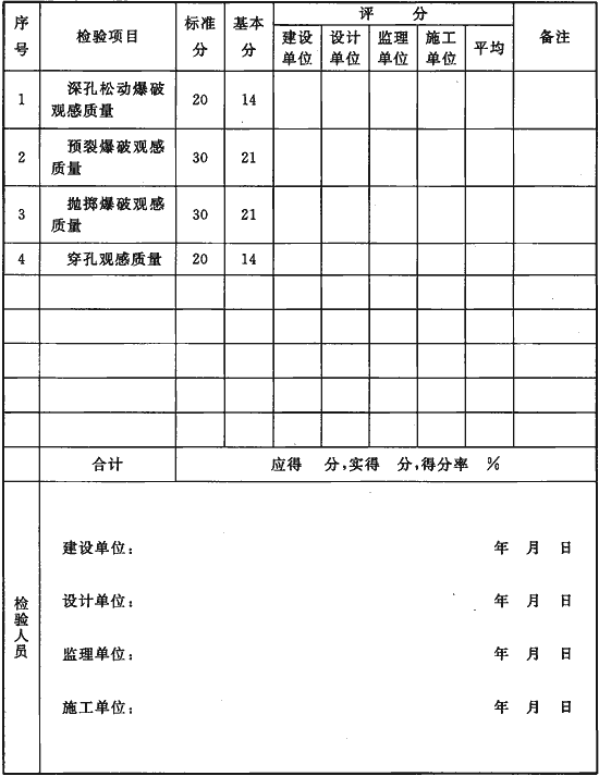 表E.0.2-9 穿孔、爆破分部工程觀感質(zhì)量檢查驗(yàn)收記錄