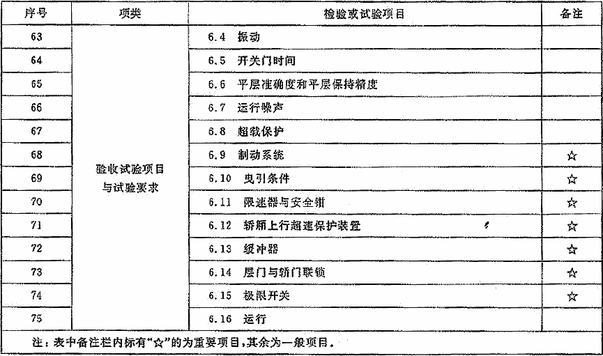 電梯安裝完畢按照表2規(guī)定的適用項(xiàng)目進(jìn)行驗(yàn)收檢驗(yàn)和試驗(yàn)時(shí),所有項(xiàng)目全部合格者,判定為合格。