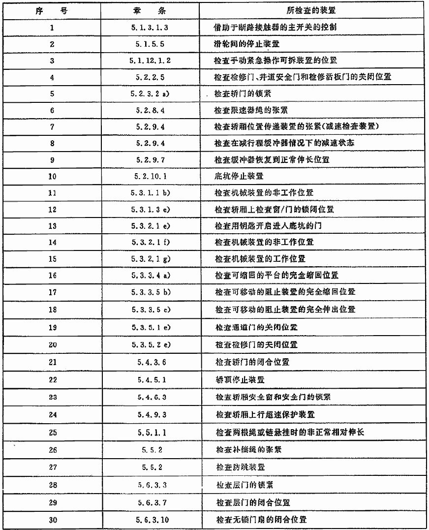電梯安裝驗(yàn)收檢驗(yàn)和試驗(yàn)按表2規(guī)定項(xiàng)目進(jìn)行。