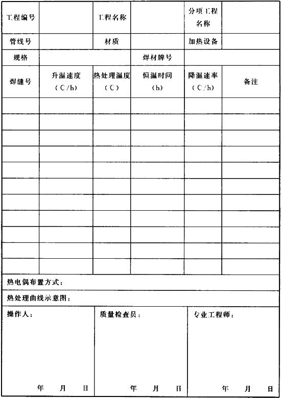 表A.0.4 工業(yè)有色金屬管道熱處理報(bào)告
