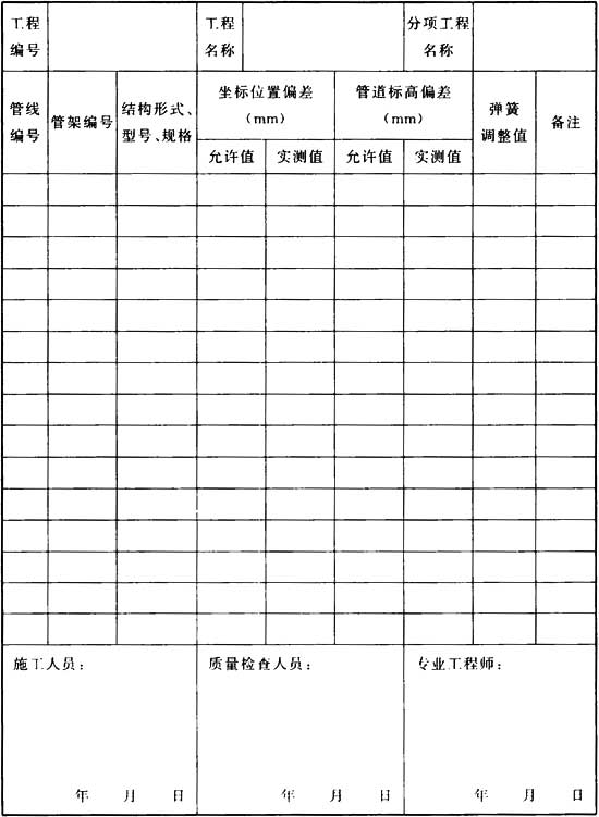 表A.0.7 工業(yè)有色金屬管道支、吊架安裝記錄