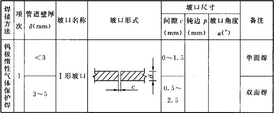表B.0.1 純銅和黃銅管道鎢極惰性氣體保護(hù)焊的焊接坡口形式及尺寸