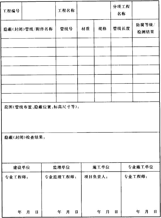 表A.0.6 工業(yè)有色金屬管道隱蔽工程記錄