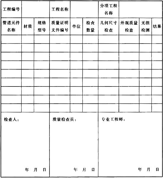 表A.0.1 工業(yè)有色金屬管道元件檢查記錄