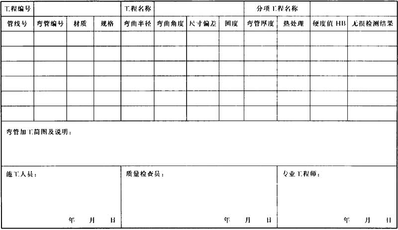 表A.0.3 工業(yè)有色金屬管道彎管加工記錄