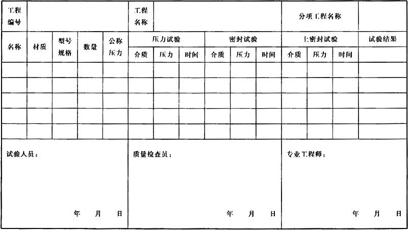 表A.0.11 工業(yè)有色金屬管道系統(tǒng)壓力試驗(yàn)和泄漏性試驗(yàn)記錄
