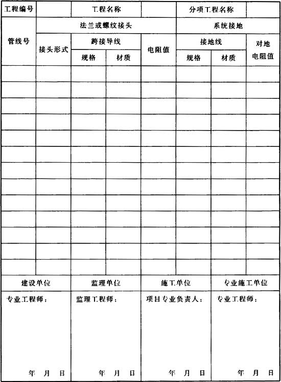 表A.0.9 工業(yè)有色金屬管道靜電接地測(cè)試記錄