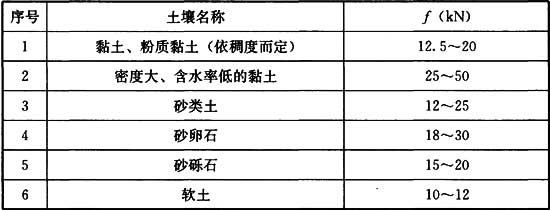 式中:f1、f2……fn——不同土層土與井壁單位面積的摩阻力(kN),應(yīng)根據(jù)試驗(yàn)確定,可按表A.0.4取值;