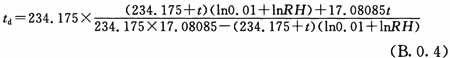B.0.4 在不同空氣溫度t和相對(duì)濕度RH下的露點(diǎn)t d可按下式計(jì)算: