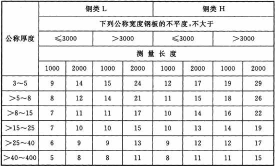表2.0.6-2 鋼板不平度允許偏差(mm)