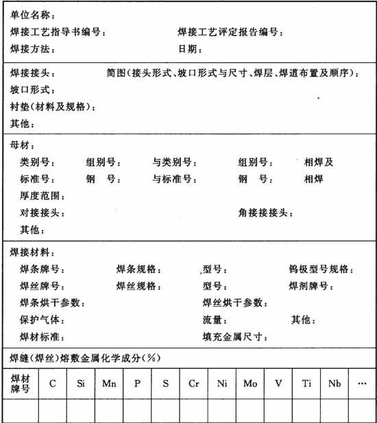 表E.0.2 焊接工藝評(píng)定報(bào)告格式
