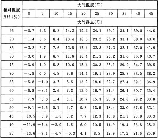 附錄B 線膨脹量計(jì)算和大氣露點(diǎn)換算表