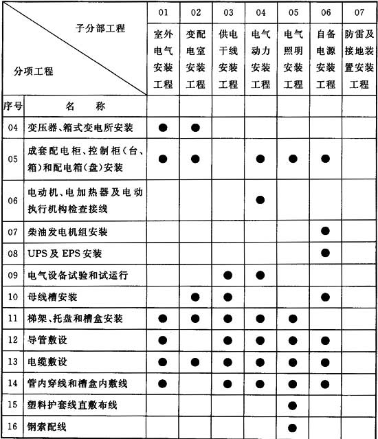 注:1 本表有●符號(hào)者為該子分部工程所含的分項(xiàng)工程;