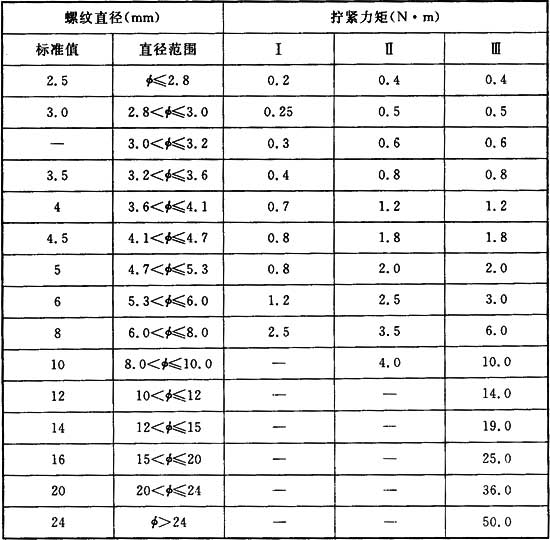 第Ⅲ列:適用于不可用螺絲刀擰緊的螺釘和螺母。