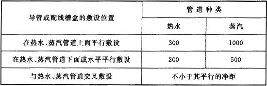 表G 導(dǎo)管或配線槽盒與熱水管、蒸汽管間的最小距離(mm)