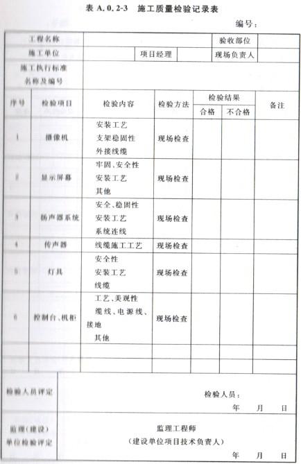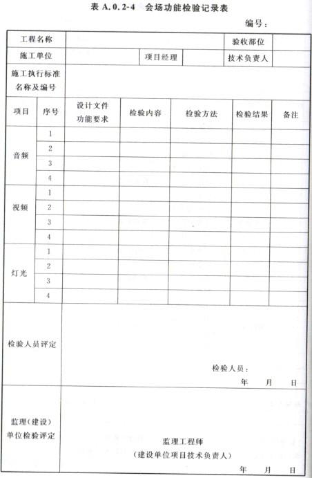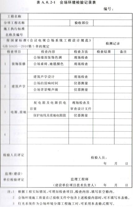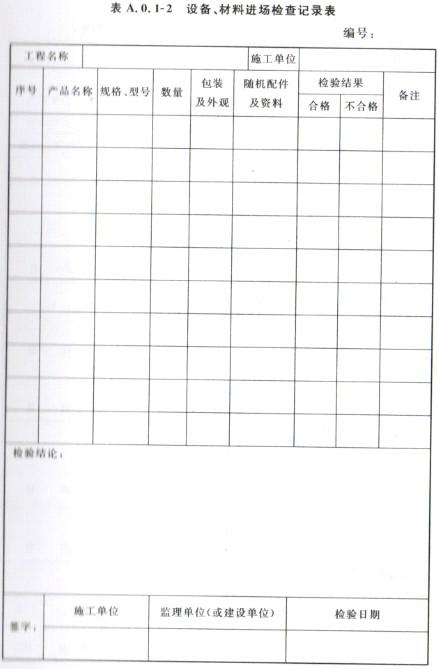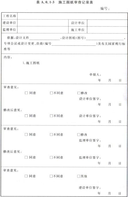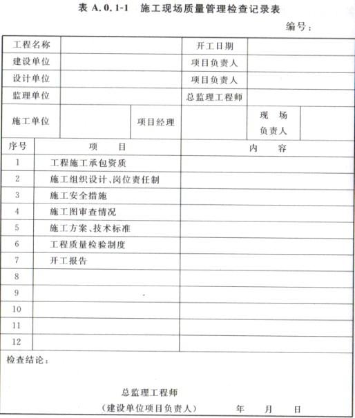 A.O.1 工程實(shí)施管理檢查記錄的表格應(yīng)符合表A.0.1-1~表A.0.1-7的要求。