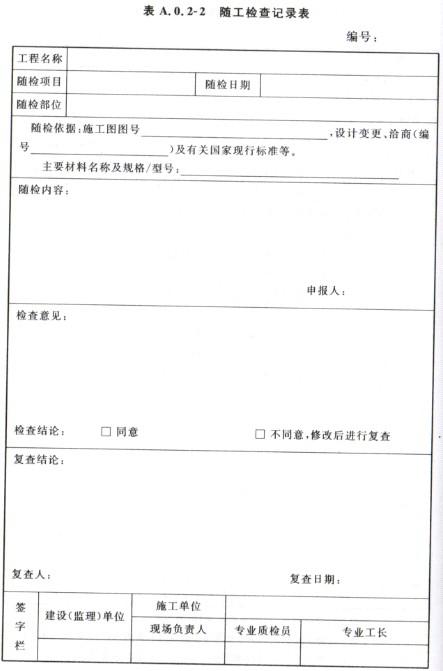 A.0.2 工程質(zhì)量控制及質(zhì)量檢測記錄的表格應(yīng)符合表A.0.2-1~表A.0.2-7的要求。