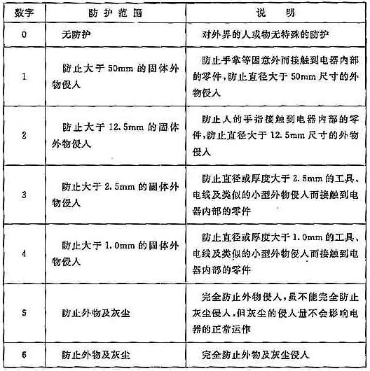 表明外殼對(duì)人接近危險(xiǎn)部位、防止固體異物進(jìn)人或水進(jìn)人的防護(hù)等級(jí)以及與這些防護(hù)有關(guān)的附加信息的代碼系統(tǒng)。