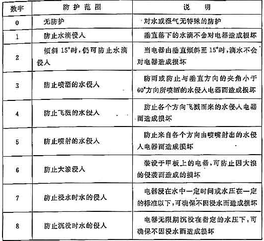 表A.0.2 第二位數(shù)字所表示的對(duì)防止水進(jìn)入的要求