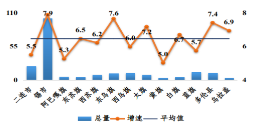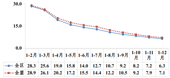 2021年全區(qū)和全盟社會消費品零售總額增速情況