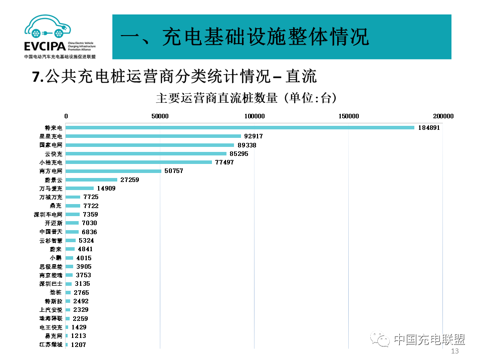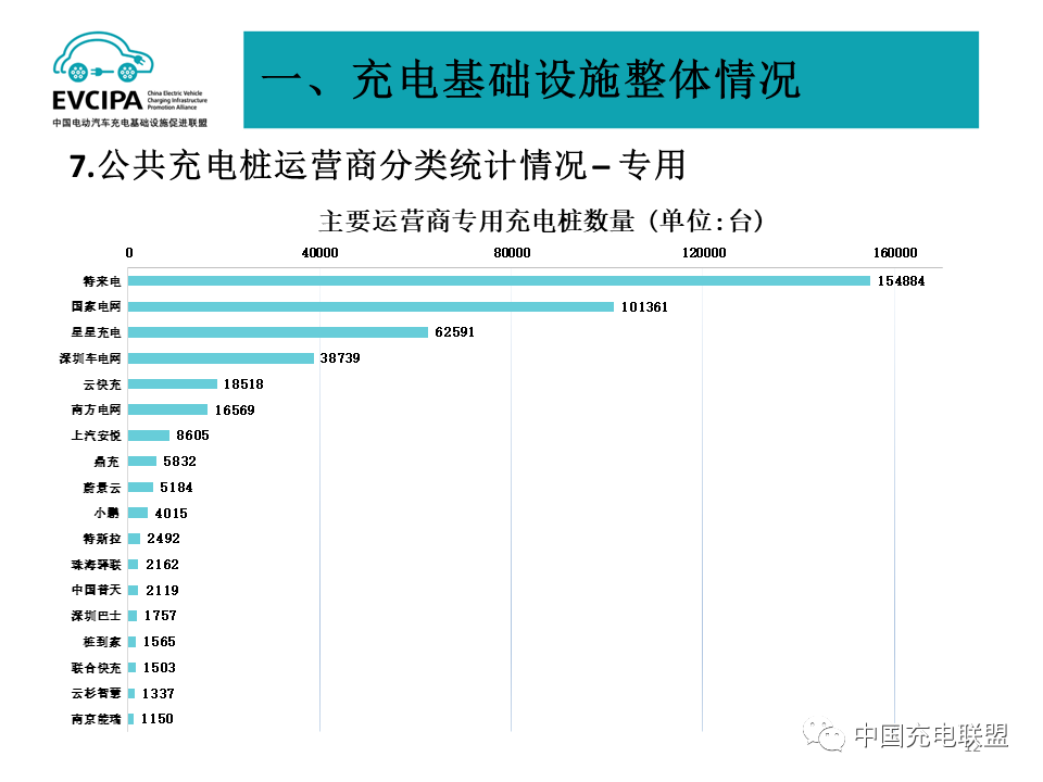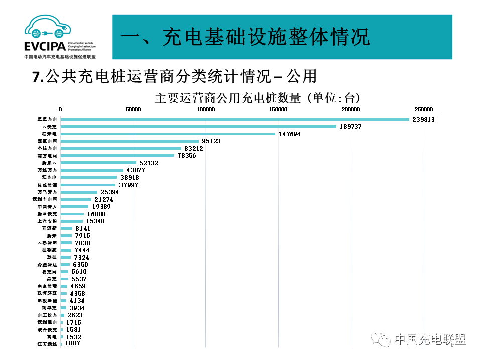 公共充電基礎(chǔ)設(shè)施運(yùn)營(yíng)商運(yùn)行情況,截止到2022年8月,全國(guó)充電運(yùn)營(yíng)企業(yè)所運(yùn)營(yíng)充電樁數(shù)量TOP15,分別為:特來(lái)電運(yùn)營(yíng)30.3萬(wàn)臺(tái)、星星充電運(yùn)營(yíng)30.2萬(wàn)臺(tái)、云快充運(yùn)營(yíng)20.8萬(wàn)臺(tái)、國(guó)家電網(wǎng)運(yùn)營(yíng)19.6萬(wàn)臺(tái)、南方電網(wǎng)運(yùn)營(yíng)9.5萬(wàn)臺(tái)、小桔充電運(yùn)營(yíng)8.3萬(wàn)臺(tái)、深圳車(chē)電網(wǎng)運(yùn)營(yíng)6.0萬(wàn)臺(tái)、蔚景云運(yùn)營(yíng)5.7萬(wàn)臺(tái)、萬(wàn)城萬(wàn)充運(yùn)營(yíng)4.3萬(wàn)臺(tái)、匯充電運(yùn)營(yíng)3.9萬(wàn)臺(tái)、依威能源運(yùn)營(yíng)3.8萬(wàn)臺(tái)、萬(wàn)馬愛(ài)充運(yùn)營(yíng)2.5萬(wàn)臺(tái)、上汽安悅運(yùn)營(yíng)2.4萬(wàn)臺(tái)、中國(guó)普天運(yùn)營(yíng)2.2萬(wàn)臺(tái)、蔚藍(lán)快充運(yùn)營(yíng)1.6萬(wàn)臺(tái)。這15家運(yùn)營(yíng)商占總量的93.2%,其余的運(yùn)營(yíng)商占總量的6.8%。免費(fèi)下載_報(bào)告模板_模版下載