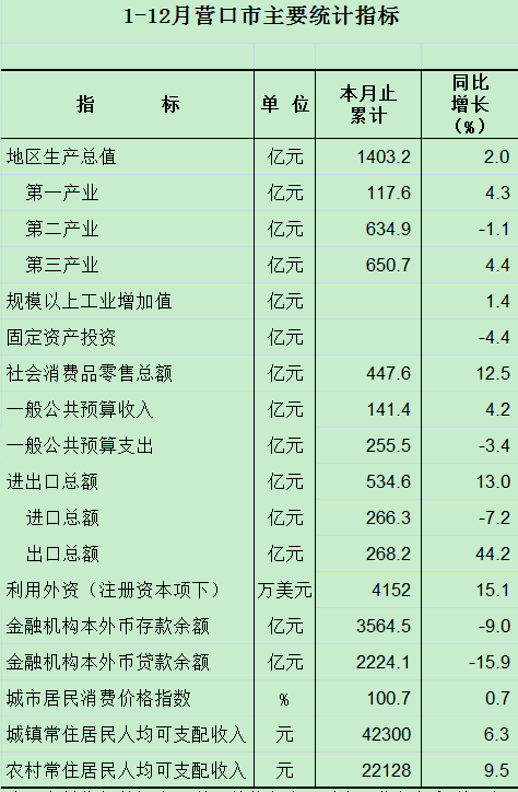 (遼寧?。I口市2021年全年地區(qū)生產(chǎn)總值統(tǒng)一核算結(jié)果