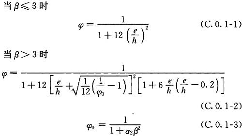 C.0.1 無筋模塊砌體偏心受壓構件的軸向力影響系數(shù)φ可按表C.0.1的規(guī)定采用或按下列公式計算: