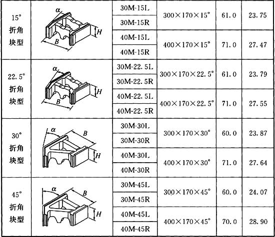 附錄A 混凝土模塊規(guī)格表