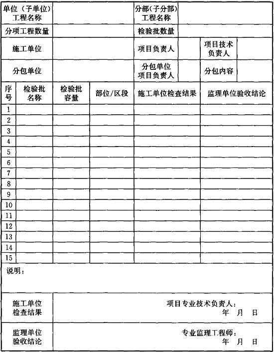 附錄B 分部工程質(zhì)量驗(yàn)收記錄
