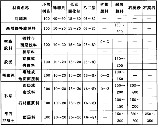 表B.0.1 環(huán)氧類(lèi)材料的施工配合比(質(zhì)量比)