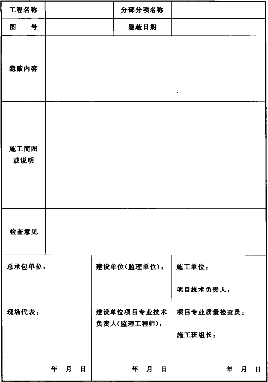 表15.0.5-3 隱蔽工程施工檢查記錄