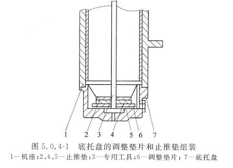 2底托盤上的調(diào)整墊片和止推墊,應(yīng)用專用工具并按隨機(jī)技術(shù)文件規(guī)定的順序進(jìn)行裝配(圖5.0.4-1),裝配時(shí)應(yīng)涂上一層潤滑油;