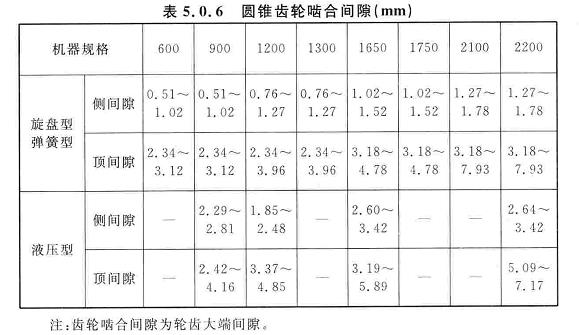 4.0.5圓錐齒輪的裝配除應(yīng)符合表4.0.5的規(guī)定外,尚應(yīng)符合本規(guī)范第2.0.4條的規(guī)定。