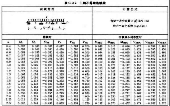 C.2 不等跨連續(xù)梁在均布荷載作用下的彎矩、建立系數(shù)