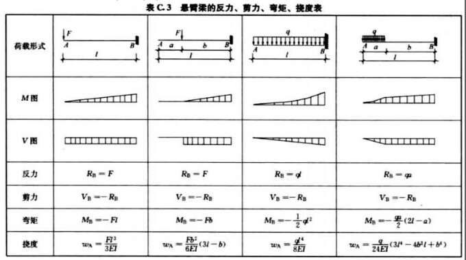 C.3 懸臂梁的反力、剪力、彎矩、撓度