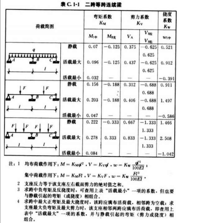 附錄C 等截面連續(xù)梁的內(nèi)力及變形系數(shù)